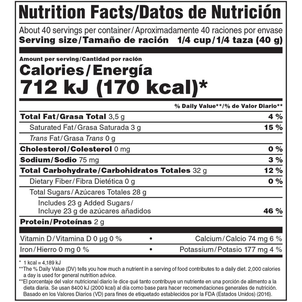 Sugar, Non-Hydrogenated Non-Dairy Creamer (Coconut Oil, Corn Syrup Solids, Sodium Caseinate [A Milk Derivative], Sugar, Dipotassium Phosphate, Silicon Dioxide, Propylene Glycol Esters Of Fatty Acids, Mono & Diglycerides, Salt, Soy Lecithin, Carrageenan, Artificial Flavor and Annatto [Color]), Sweet Whey, Nonfat Dry Milk, Black Tea Powder, Maltodextrin, Natural and Artificial Flavors, Honey Powder, Ground Cinnamon, Guar Gum, Silicon Dioxide (Anti-Caking Agent), Ground Cloves, Ground Cardamom, Ground Ginger, Ground Anise.